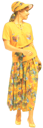 短袖、過膝長裙,領巾與腰帶搭配同布料的遮陽帽,妝點嫵媚風韻,是夏日裡最旖旎生動的風情畫!上衣有黃褐色、深橘色、鮮黃、桃紅、淺粉紅、紫色等多種顏色。