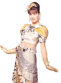 意謂把眾生都「度」空!下身的斜型弧度搶眼但含蓄,不是一定的排法,和諧而有韻味,女性氣質表露無遺。上身的布面交錯,剪接配合得當。泡袖的設計高貴,袖口的位置恰到好處。上下身的中空部份鑲珠鍊,優雅而婉約,喚起女性天生的女性美,雍容雅致,有母儀天下的尊貴。