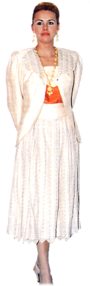 lining extends just below the soft waist-pleated knee-length skirt.