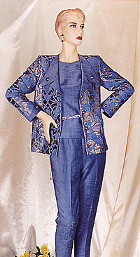velvet sky-blue vest with a simple boat neckline, in combination