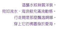The wearer appears to be immersed in an ocean of love, and looks elegant and graceful when in motion.