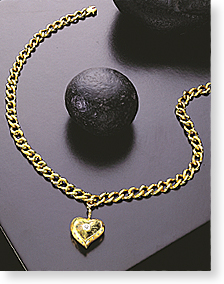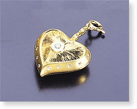 The diamond set in the center of the heart-shaped pendant represents the Wish-fulfilling Muni Pearl. When we find our wish-fulfilling pearl of wisdom inside, its infinite light makes everything possible. The delicate pendant is designed to be opened and a photograph may be placed inside.