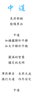 唯有保持中道,才能在正、負力量的交戰中順利、安全地回歸上帝的國度。